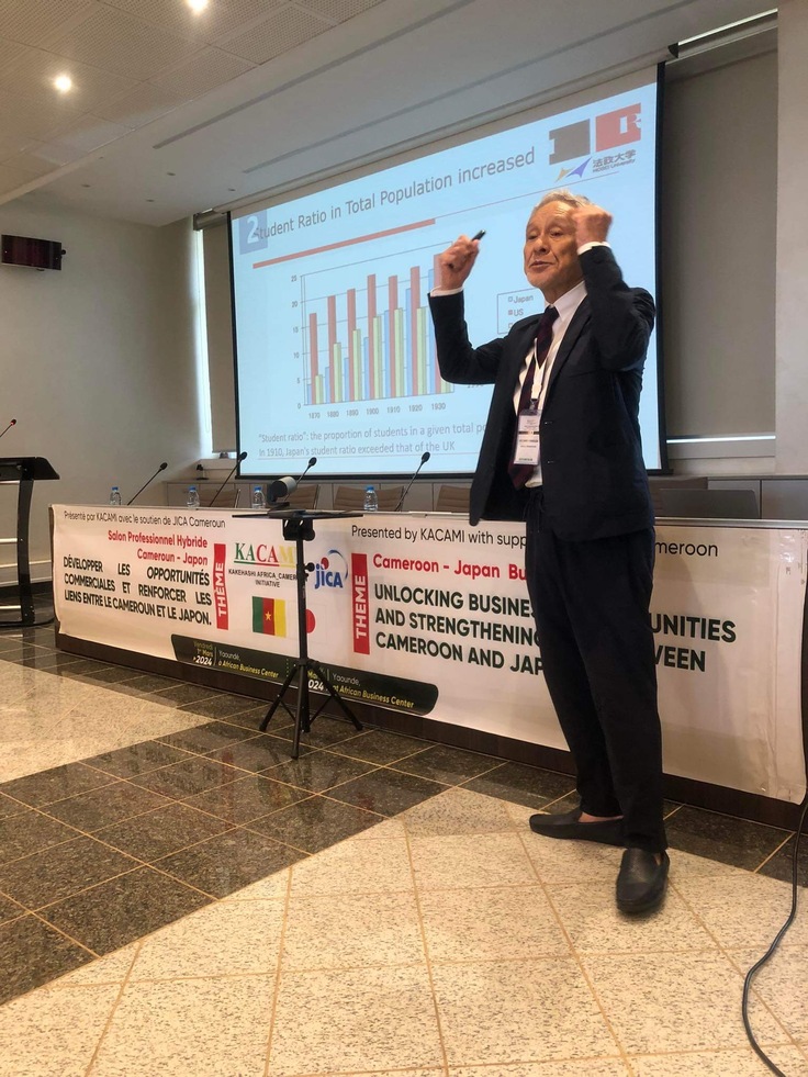 ミカエルの開会挨拶に始まり、JICA所長、駐カメルーン日本大使館第二事務局長、駐日カメルーン大使の挨拶に続いて、基調講演をぶっぱなしてきました。いつものように教育の重要性を訴えると同時に、「対カメルーン投資・日本企業の進出」を訴える前に、「自分たちの国や企業が日本を呼び込むだけの力や魅力があるのか」を問え!と吠えました。ほとんどのアフリカ諸国は日本や海外からの投資・企業進出を望んでいます。そうした他国と差別化をし、十分な魅力とインセンティブを提供しない限り、人口2700万人で識字率75%のカメルーンに勝ち目はないのです。もちろん差別化の方法もあると述べました。