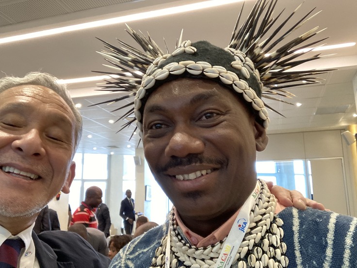 エリックさんの伝統的衣装は素敵だった。首飾りは昔のコイン(貝殻)、帽子はハリネズミの棘。そして、JICAドレスを着たJICA少女たちの唐突な歌も面白かった(どうも作曲はエリックらしい、笑)。カメルーンはいい国だが、マインドセットを変えないと離陸には時間がかかると思いました。