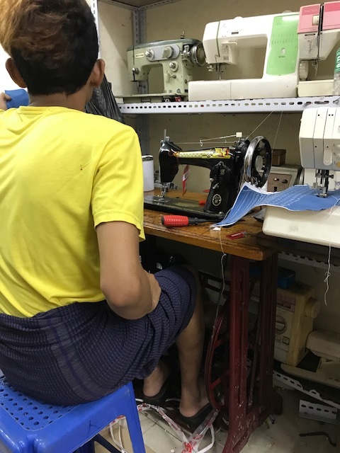 昔の中古ミシンが現役で動いているミャンマー。昔のミシンって、重いけど頑丈で作りもシンプルなので長く使えて経済的だと改めて感じました。