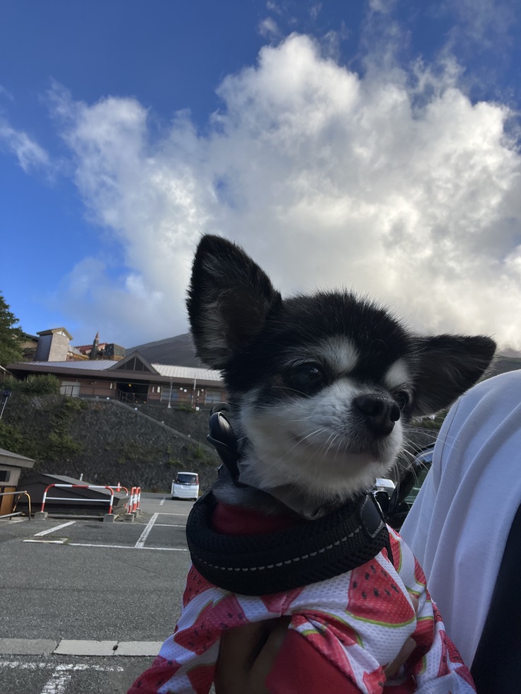 呼吸数は増えてはいないですが前回もひどい咳が続いて肺水腫になったため今日はちょこちょこ起きて様子見しながら添い寝しようと思います。仕事が遅くまでかかってしまったので今日の写真は去年の9月くらいに富士山背景に撮ったものです。