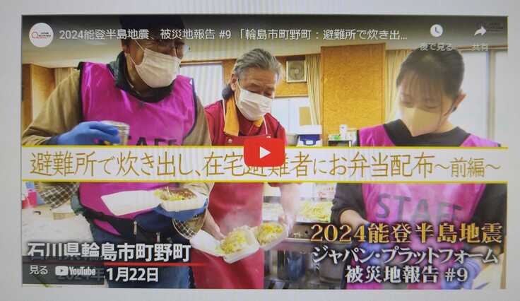 2024能登半島地震 被災地報告 #9 「輪島市町野町:避難所で炊き出し、在宅避難者にお弁当配布<前編>」 (youtube.com)