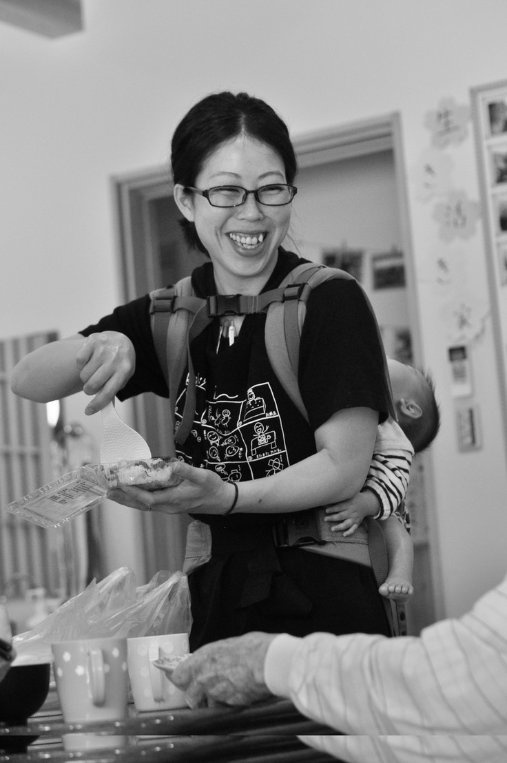 利用者Hさんは、生き活き家の隣に家に住んでいました。最初は迎えに行ってもなかなか来てくれないし、来てもすぐに出ていってしまうばあちゃんだったのですが、ごはんをつくる手伝いなどをしてもらっているうちに、積極的に来てくれるようになって他の利用者の介助もしてくれるようになりました。