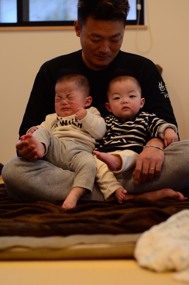 介護を天職と考える二人は、お年寄りがいかにふつうに日常を過ごせるかに徹底して取り組んでいますが、その姿勢に、親ながらいつも深く感動しています。やはりこれ以外の仕事はないと心しているからこそできることなのだろうと、二人を見て納得させられます。だから、たとえ子供達5人(11才、7才、3才、0才児の双子)の育児があっても、互いに協力しあって、介護という仕事と両立させています。しかもハッピーに!!