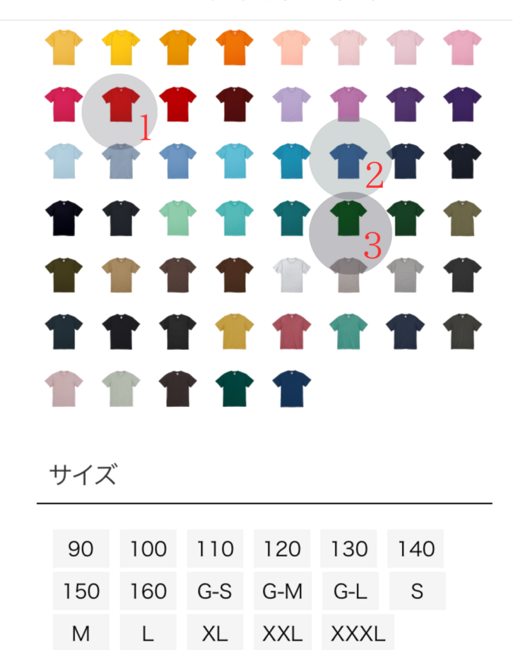 Tシャツ 色 サイズ についてお伺いメール送信します
