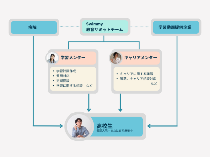 このプロジェクトは、病気で入院中の高校生が治療と並行して学習とキャリア形成を続けるための支援を行います。