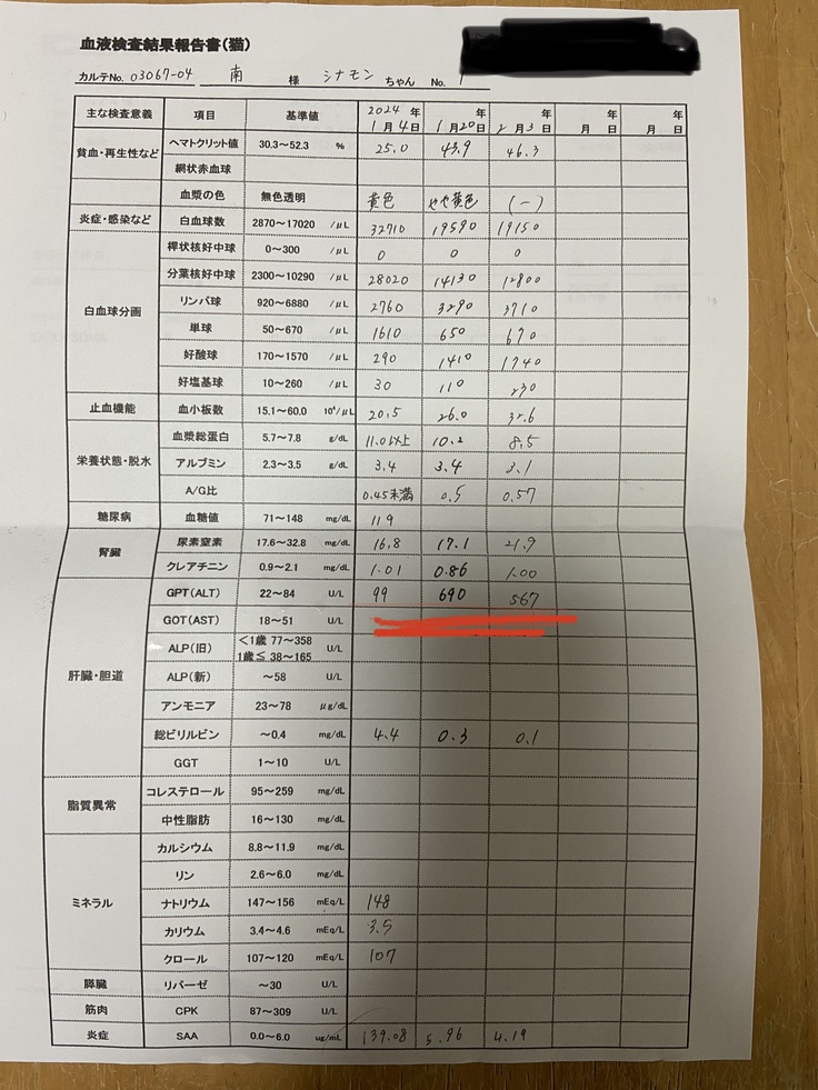 検査の結果は、貧血も好酸球も黄疸も改善傾向。