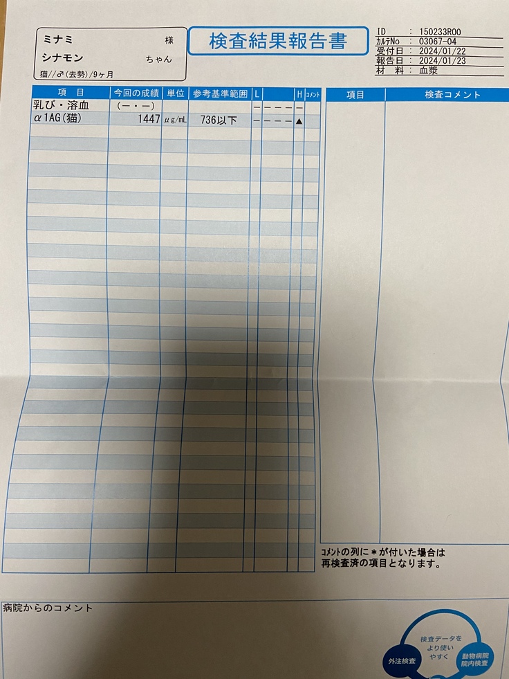 ただ、病院の看護師の方達の保体が上手なのか、今回は鎮静無しで採血とエコー検査を受けることができました。