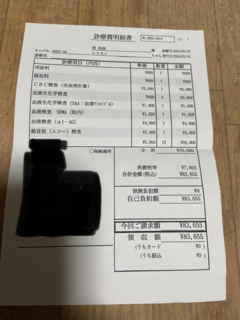 先日の3/16日はシナモンの通院日で、血液検査、エコー検査を受けてきました。