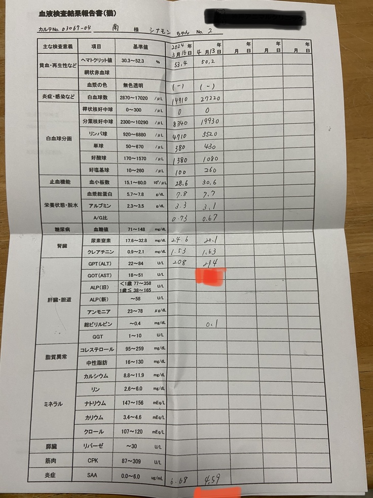 4/13にシナモンがFIPのお薬を絶ってから、約2週間後の検診に行ってきました。