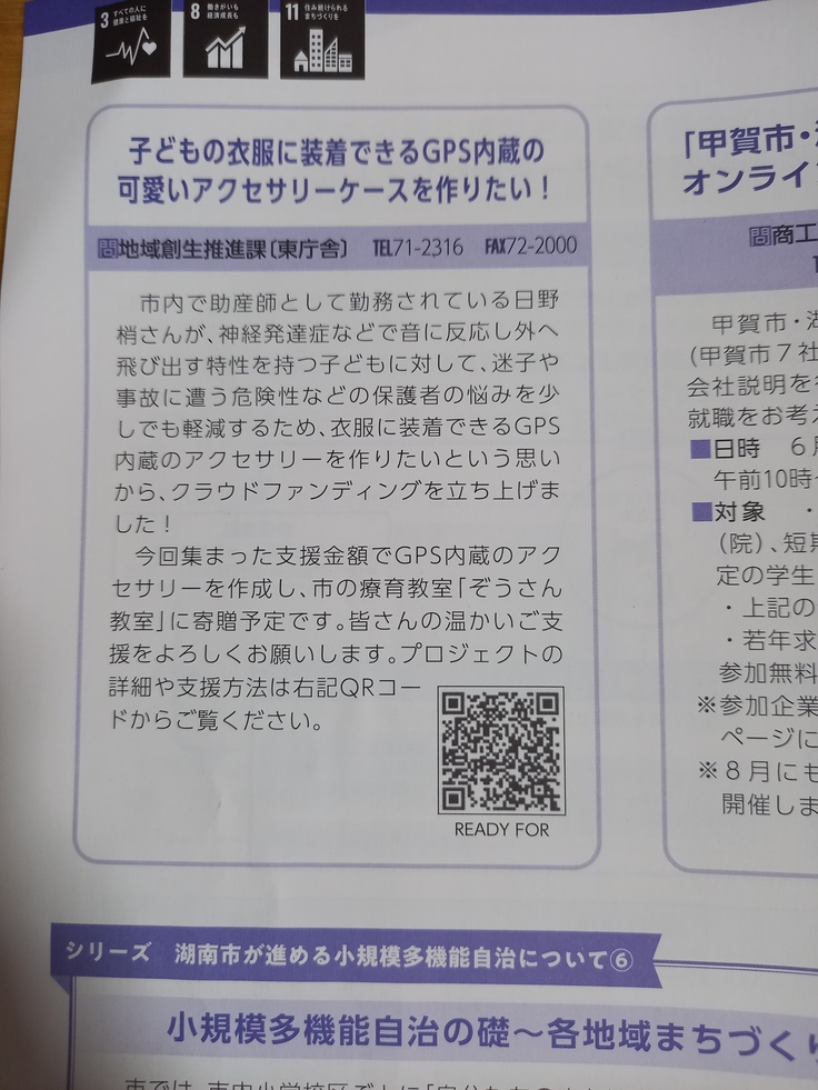 滋賀県湖南市さんの支援もあり、広報にも載せていただきました!