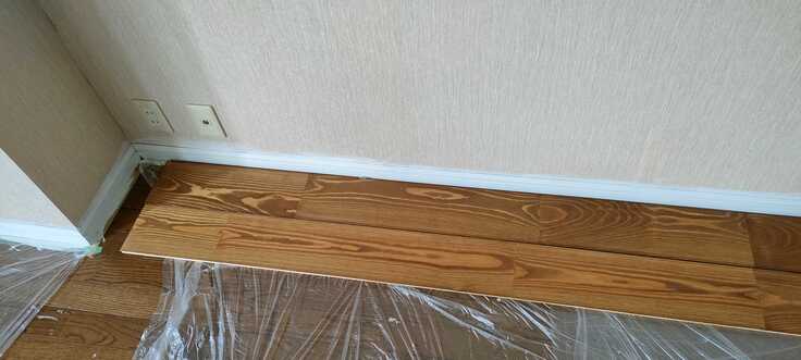 漆喰を塗って、赤松のフローリングも届きました🏠