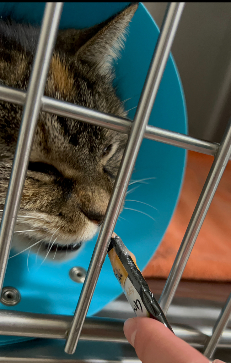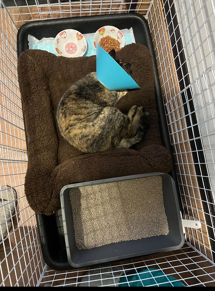 入らないように小さめのゲージで安静にしながら過ごしています。