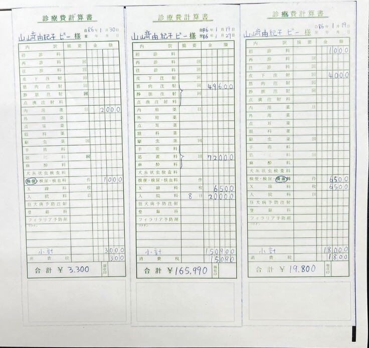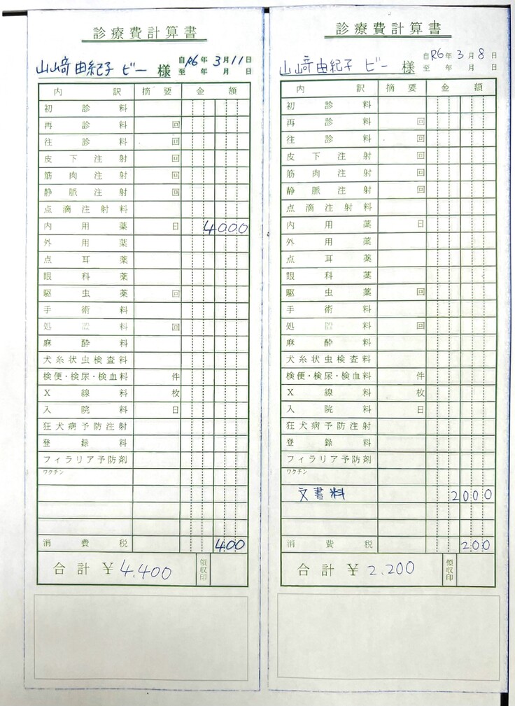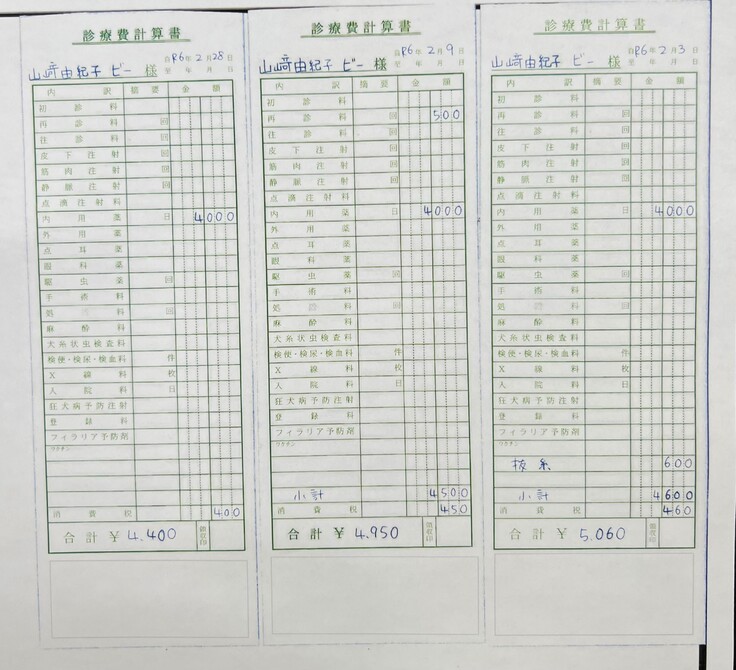 ページ上に掲載している診断書や診療明細書などの資料は全て動物病院から掲載の許諾を得ております。