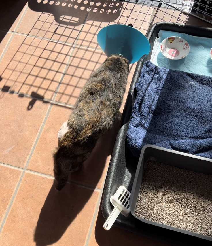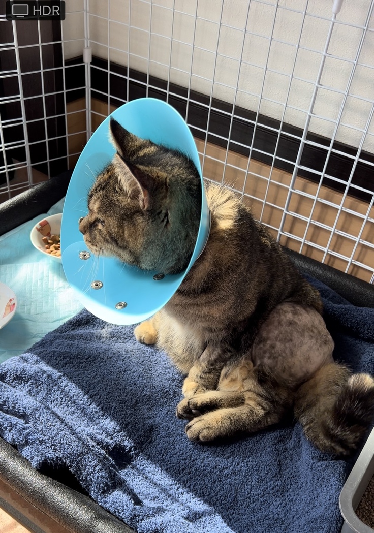 びーちゃんはまだ傷を保護するためにカラーははずせませんが、家の中をパトロールしながら歩くリハビリを行なっております🐈