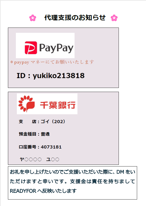 ご支援いただいた際に、お手数ですがDMを頂けますと幸いです。