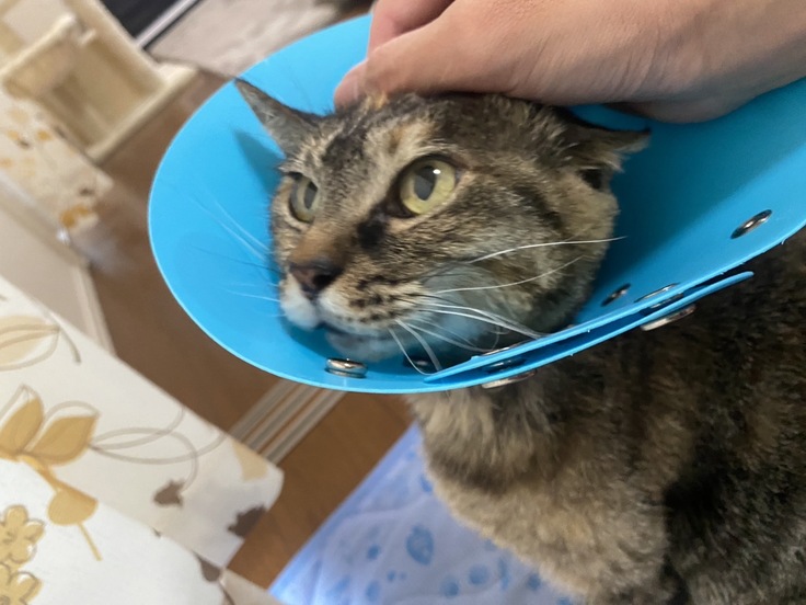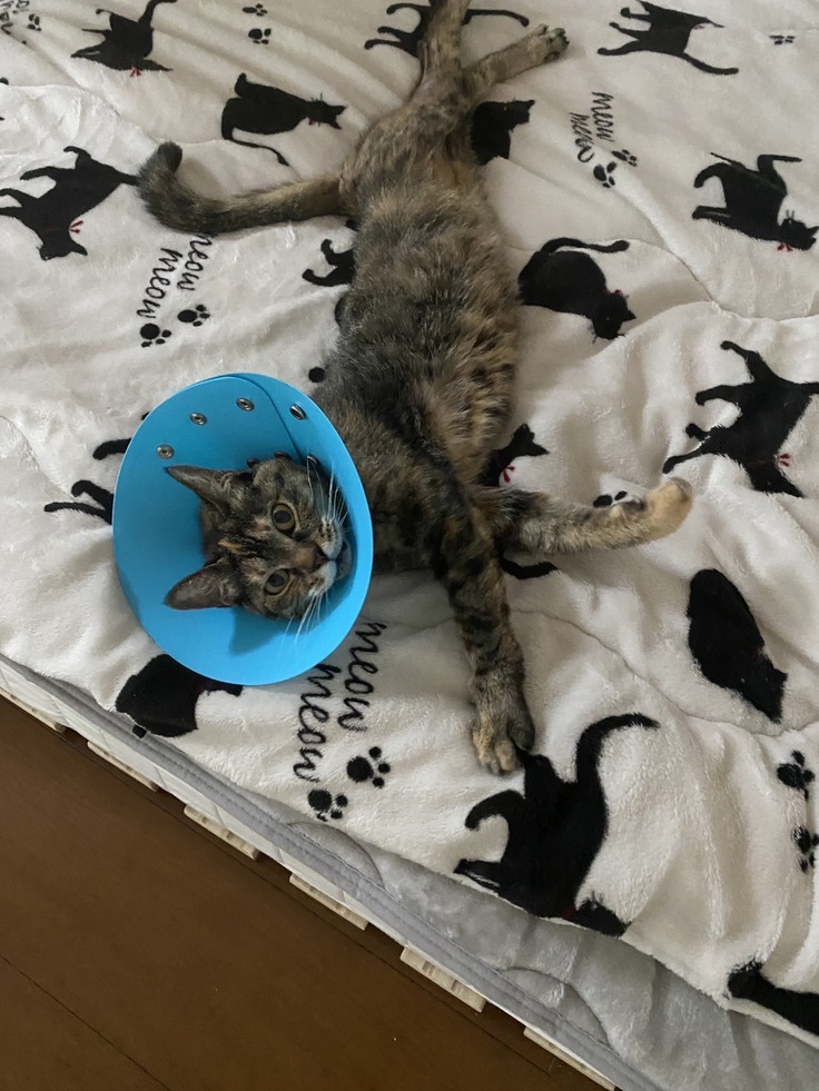 何も心配がなければ、2週間後に抜糸の予定です。びーちゃんのトレードマークとなりつつあるブールのカラー🩵ともあと少しでお別れになります🐈
