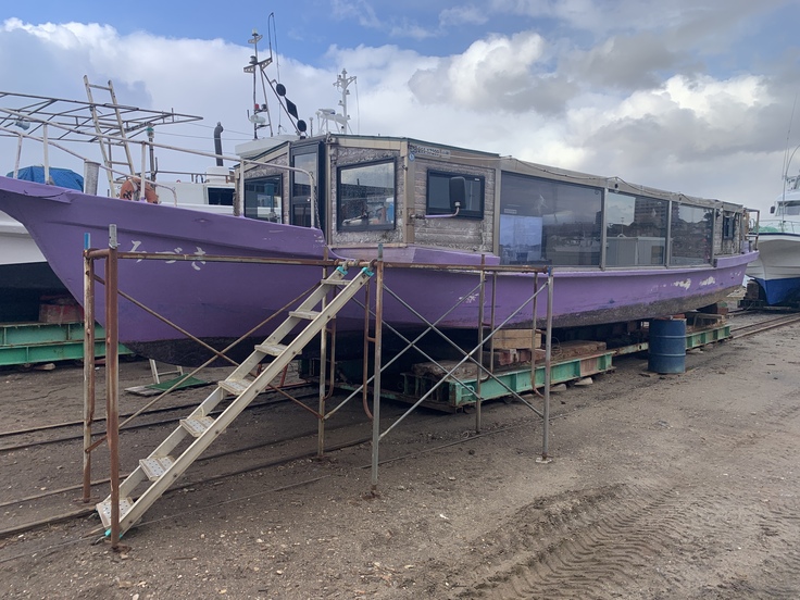 陸にあげて全塗装と内装工事に取り掛かります。クラファンが成功しないと、塗装だけで終わってしまうかもしれない・・・何としても新井田川に夢の国の船を走らせますので応援お願い致します!