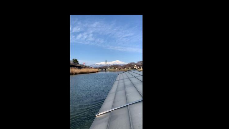 この日は天候もよく、JR羽越本線の陸橋を抜けると壮麗にそびえる鳥海山!
