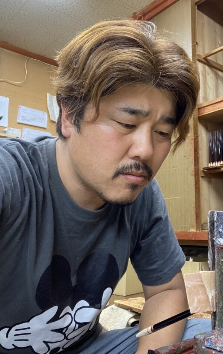 輪島を離れ兵庫県で就職していましたが、3年前に家業を継ぐため、妻と息子3人を連れて輪島に帰ってきました。まだまだ見習いで父に師事して日々励んでいました。