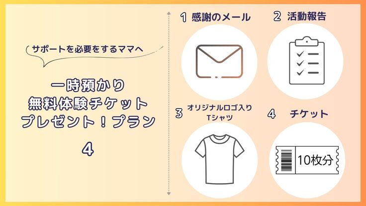 サポートを必要とするママへ、一時預かり無料体験チケットプレゼント!プラン4