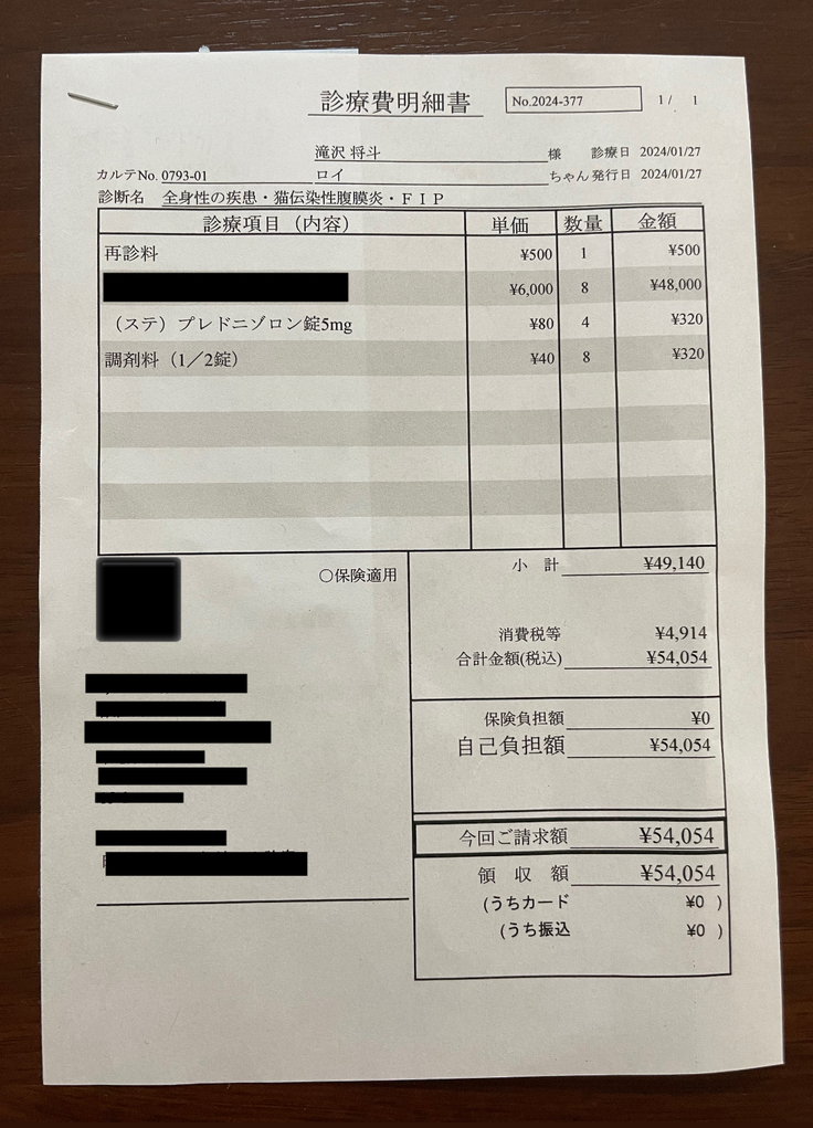 ロイくんの現在治療中である猫伝染性腹膜炎(FIP)の今までと今後の治療費にあてます