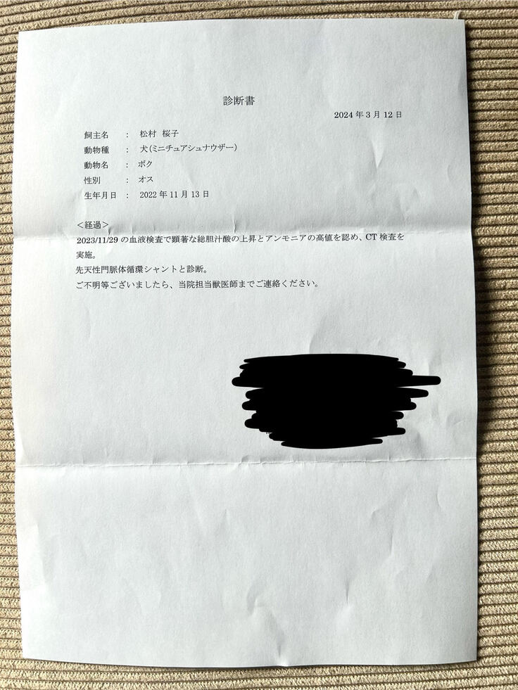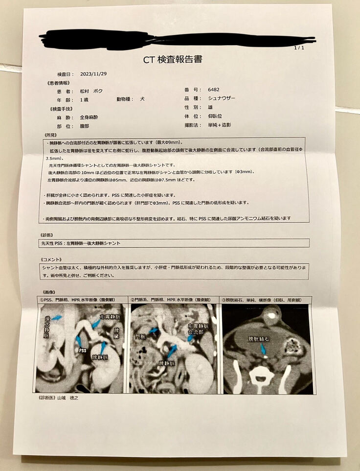 緊急でCTによる精密検査をしたところ、門脈シャントと判明されました。