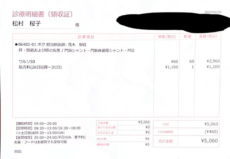 2024年2月20日 5,060円/5,060円 ※保険適用なし 薬代金