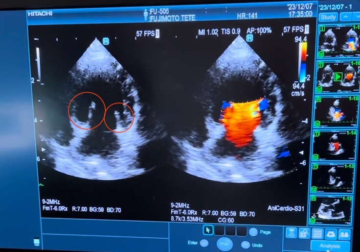 最悪の場合、左心房の壁が破れ、心臓の外に血液が漏れ出て急死することもある危険な病気です。
