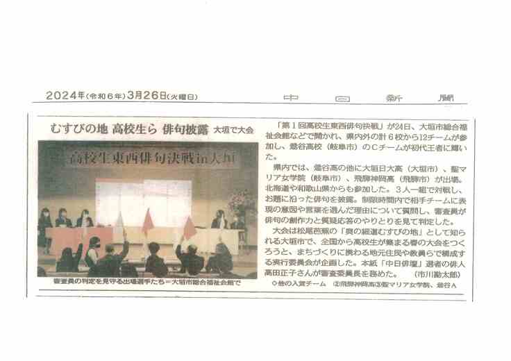 下記のとおり、第1回高校生東西俳句決戦in大垣を12チーム・役員・審査員・スタッフ
