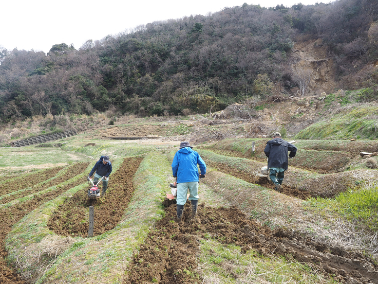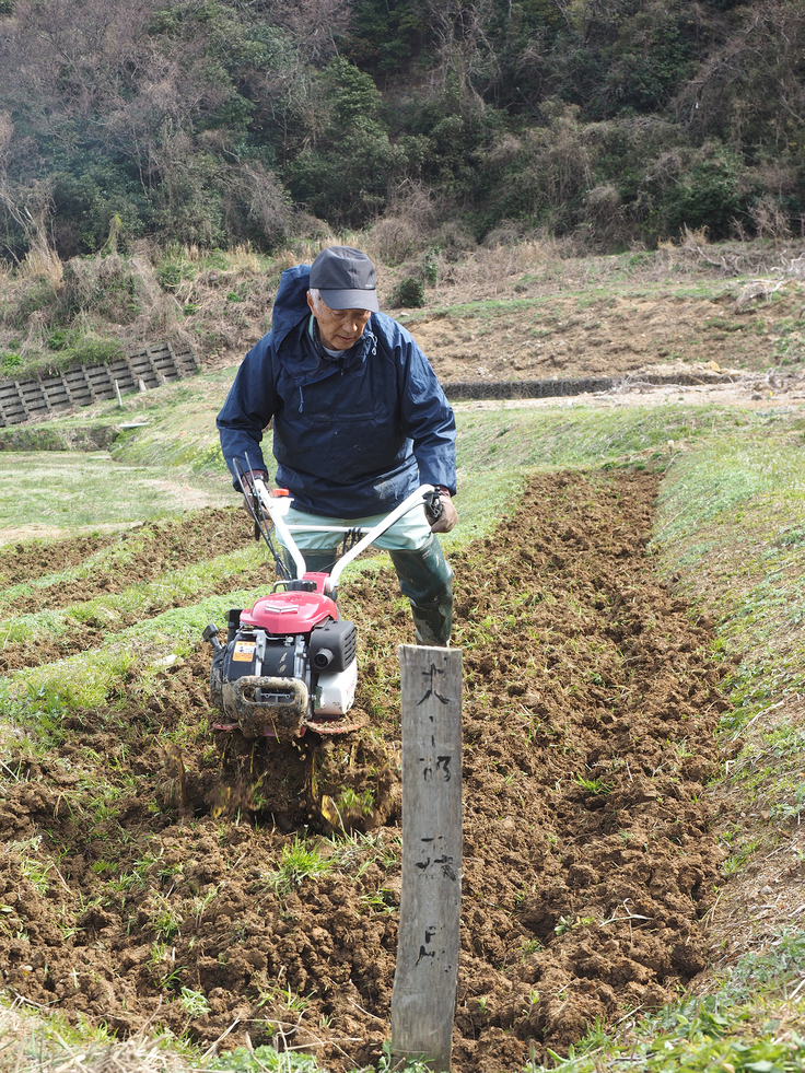耕運機の刃が土の中に深く潜って、地中に眠っている土を地上に放り出すたびに「そろそろ起きろー」「春だぞ、起きろー」と言っているような気がしてしまいます。