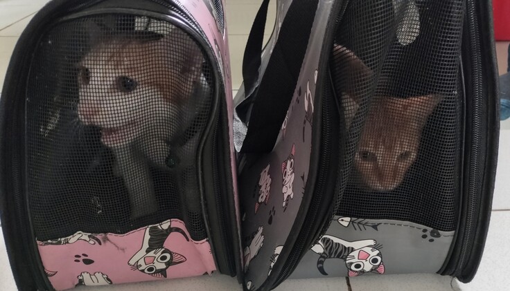 朝ツナくんとタラくん、去勢手術のため保護施設へ。