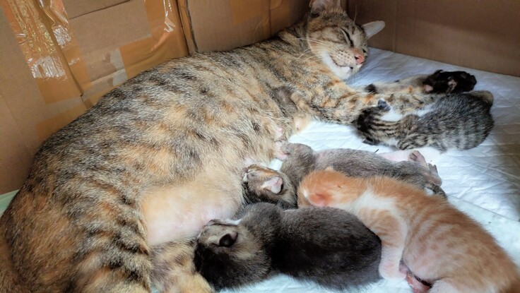 そして、妊婦猫(もみじちゃん)ですが、日付が変わった14日無事に4匹を出産いたしました。
