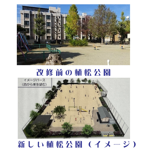現在、植松公園は全面改修工事中で、5月末に完成予定です。はたして、どんな美しい公園に生まれ変わるのか今から楽しみです。