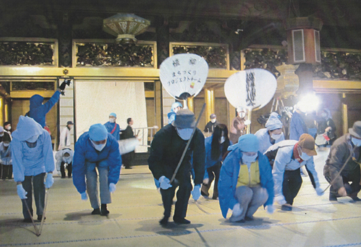 今回のプロジェクト「門前町石畳の会」は(会長)丸三仏壇店 三浦勝治、(副会長)ぶつぐ屋北川 北川勇太、山本亀太郎商店 龍村聰、伊吹新八商店 伊吹明希子、相談役として宇佐美松鶴堂 宇佐美直八で活動しておりますが、西本願寺様をはじめ、正面通周辺にて商売をされている方、お住まいの方にもご賛同・応援を頂いてプロジェクトを実施しております。