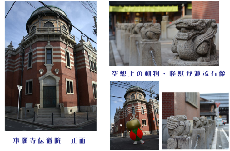 門前町(正面通)の中心部に位置する『本願寺伝道院』は明治後期に建てられたモダン建築で、現在は本願寺派僧侶の伝道布教の学びの場所となっています(非公開)