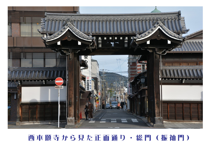 浄土真宗は鎌倉時代の中頃に親鸞聖人によって開かれ、その後天正19年(1591年)に豊臣秀吉から土地の寄進を受け現在の場所に移りました。西本願寺が移られた事によりこの地の人たちは商売を仏具関係や旅館、飲食店等に変えていき、現在の門前町として発展してきました。