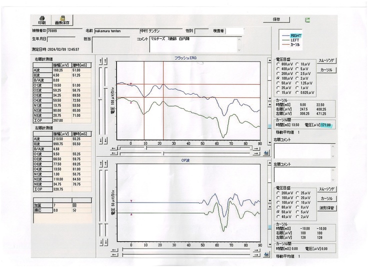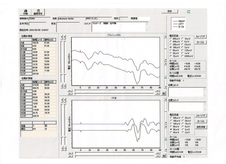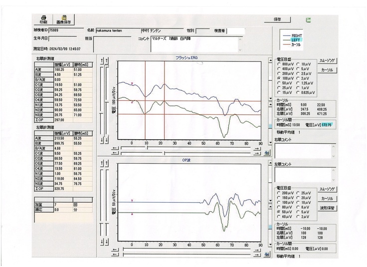 手術をするために必要な網膜電位図(ERG)検査、眼科超音波検査を受けました。