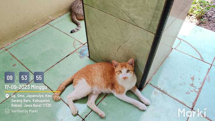 最初のキャットハウスは、チカランという町の繁華街に近い住宅地の一軒家、と言っても日本の長屋のイメージですが、を借りていました。クアクアくんはその最初のキャットハウスの玄関先に置き去りにされていました。最初は特に怪我も病気もなく、自然とキャットハウスのほかの猫たちに溶け込んでいきました。彼に降りかかった最初の苦難は、伝染性腹膜炎でした。当時のケアラーファイザルさんが「お腹が大きすぎる」と異変に気付いてくれて、直ぐに獣医さんに診てもらい、この難敵が判明しました。しかし、何と彼は薬を二か月間毎日飲み続けて、遂に克服したのです。3年前のことです。更に、去年もう一度この病気に罹患したのですから、不運な子です。しかしこれまた克服して、いまではすっかり太っちょさんになってきています。クアクアくんは、ユディさんに名前を呼ばれると、ちゃんと返事ができるほど聡明で、かつ、ユディさんが薬を飲ませているときはいつも近くで見守っているほど、病気の猫たちを気遣うことができる優しいお兄さんです。おそらく、自分が何度も難病を克服してきているので「諦めずに頑張れ」と病気の子たちにエールを送っているのではないでしょうか。ご飯時も、食べるのはいつも最後のほうで、若い子たちに先に食べさすのです。ユディさんもそれがわかっているので、ちゃんとクアクアの分を残してくれています。こんな頼もしく優しく美しいクアクアを、是非皆さん応援してあげてください。