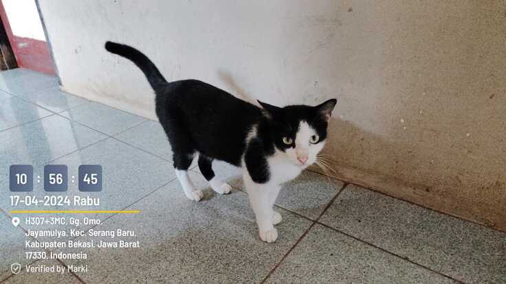 出会ったのは、生後2月くらいの2020年の冬、西ジャワ州カラワン県のとあるルコ(日本でいう長屋みたいな飲食店街)でした。日本食レストランの店先に妹と一緒に捨てられていて、食欲不振だった妹には抗生剤や回虫薬など飲ませましたが、その晩に天に召されることに。残されたノノくんも数日間は食欲不振などで生死の境を彷徨いましたが、食欲が戻るとともに徐々に元気になりました。1歳前後の成長期はグルマンぶりを発揮して、お魚の水煮を調理中、ガスコンロの真横に陣取って一番にあり付こうとするほど、ご飯が好きでいつもおなかがすいていました。でも、生来のおとなしい性格からか、ごはんがらみはもとより、そもそも喧嘩をしたことはありません。また好き嫌いもなく、ドライフードでもウェットフードでも、鶏さんでもお魚さんでも、なんでも喜んで食べます。グルマンだからなのか、病気にもめっぽう強く、病院に行ったことはありません。そんなノノくんももう3歳を過ぎて、若くはなくなってきましたが、毎日夕方は柵のうえに何十分も乗ってユディさんの帰りをひたすら待つ愛らしさは残っています。そのあとご飯を食べ終わるとすぐに柵を乗り越えて、敷地の外に消えていく毎日です。そんな孤独を愛するグルマンなノノくんを是非応援してください💛