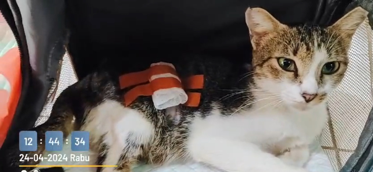 今日は無事避妊手術を終えたルチアちゃんです。麻酔も切れて、しっかりしたお顔ですね。数多くの病原菌が繁殖する熱帯ですが、傷が完治することを祈るのみです。避妊手術の習慣のないインドネシアでは、路上で命を落とす不幸な仔猫がたくさんいますので、みなさまのご支援はこうした不幸な仔猫たちを救うために使わせて頂きます。