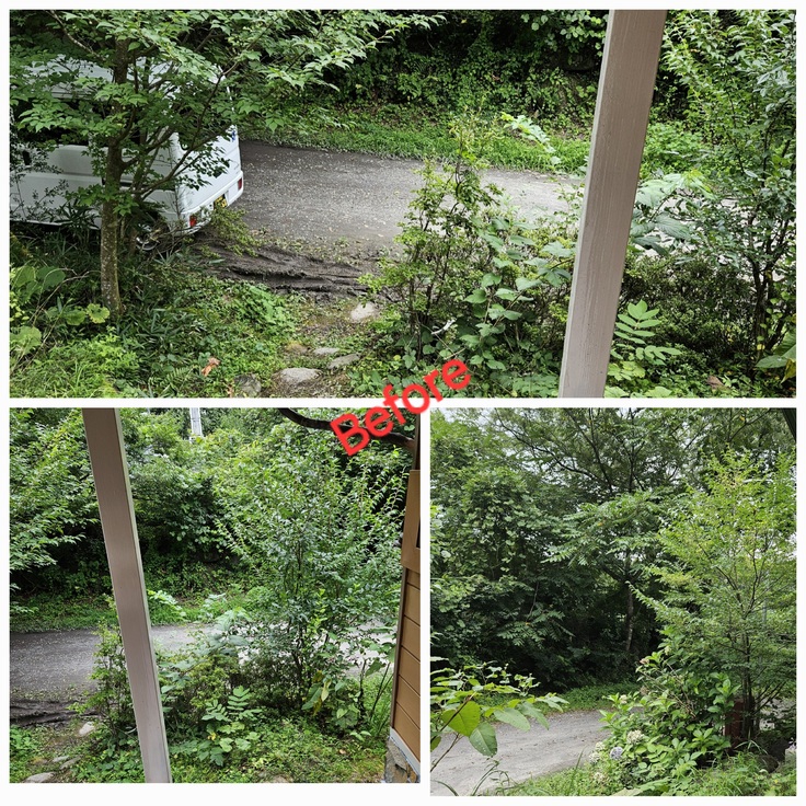 23日、雑草を取り、苔のはえている岩を洗浄します❗