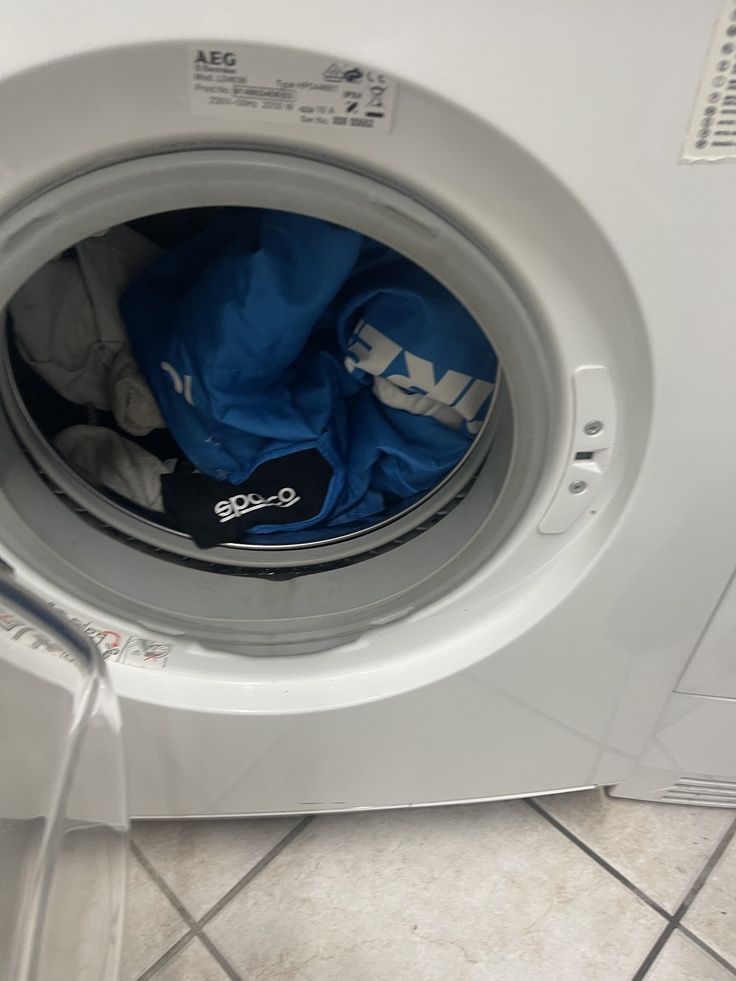 灼熱の汗なのか冷や汗なのかわからないけれど、じっとりと湿ったスーツをカラッと干すのは気持ちいいですね。T社ガレージの洗濯機をお借りしてジャズジャブウォッシングね。