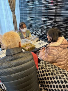 ご主人は自分には老眼鏡が必要ないとおっしゃっていましたが、老眼鏡の配布があると聞き、急いで奥さまを連れて来て、老眼鏡をもらいました。