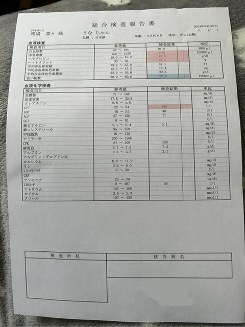 血液検査の結果ですが、、、