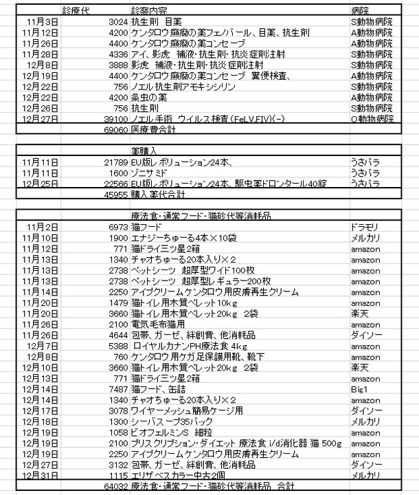 そのため、治療の開始日付および薬やフード、消耗品の購入がご支援金受け取り日以前になっていますので、その点どうかご了解くださいませ。