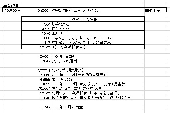 また、猫のフードのご寄付も頂きましたので、購入が少なくてすみました。本当にありがとうございました。