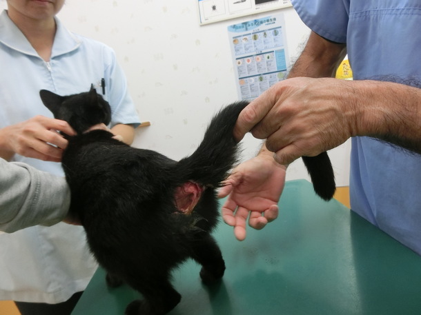 数日後、なんとおしりの近くにぱっくりと大きな穴が開いていました。
