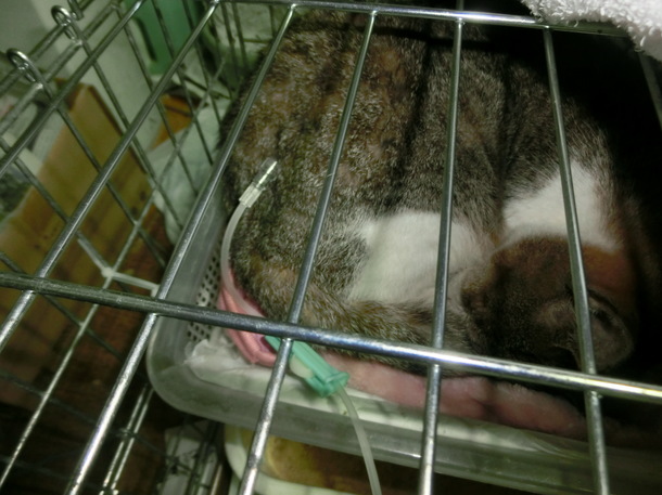 風太郎は、3日ほどこの状態で何も食べることなく、昏々と眠り続け、もう助からないのかも・・・と感じました。薬は何とか口に押し込み、リンゲル補液もつづけました。