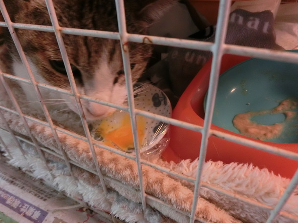 その後眼振はおさまり、吐くことも少なくなり、少しずつ食欲も出てきました。ビタミン剤の代わりに、目玉焼きの黄身の部分を少し与えました。