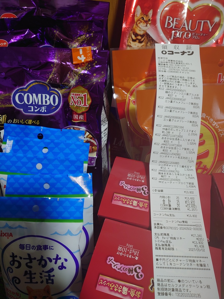 コーナンにてにゃんこのご飯を買いに行きました。